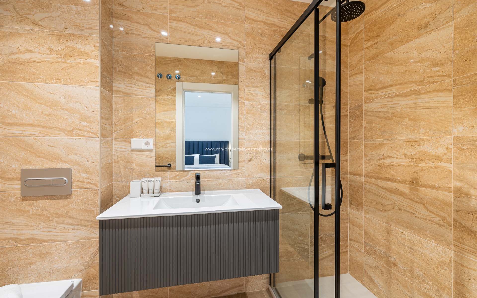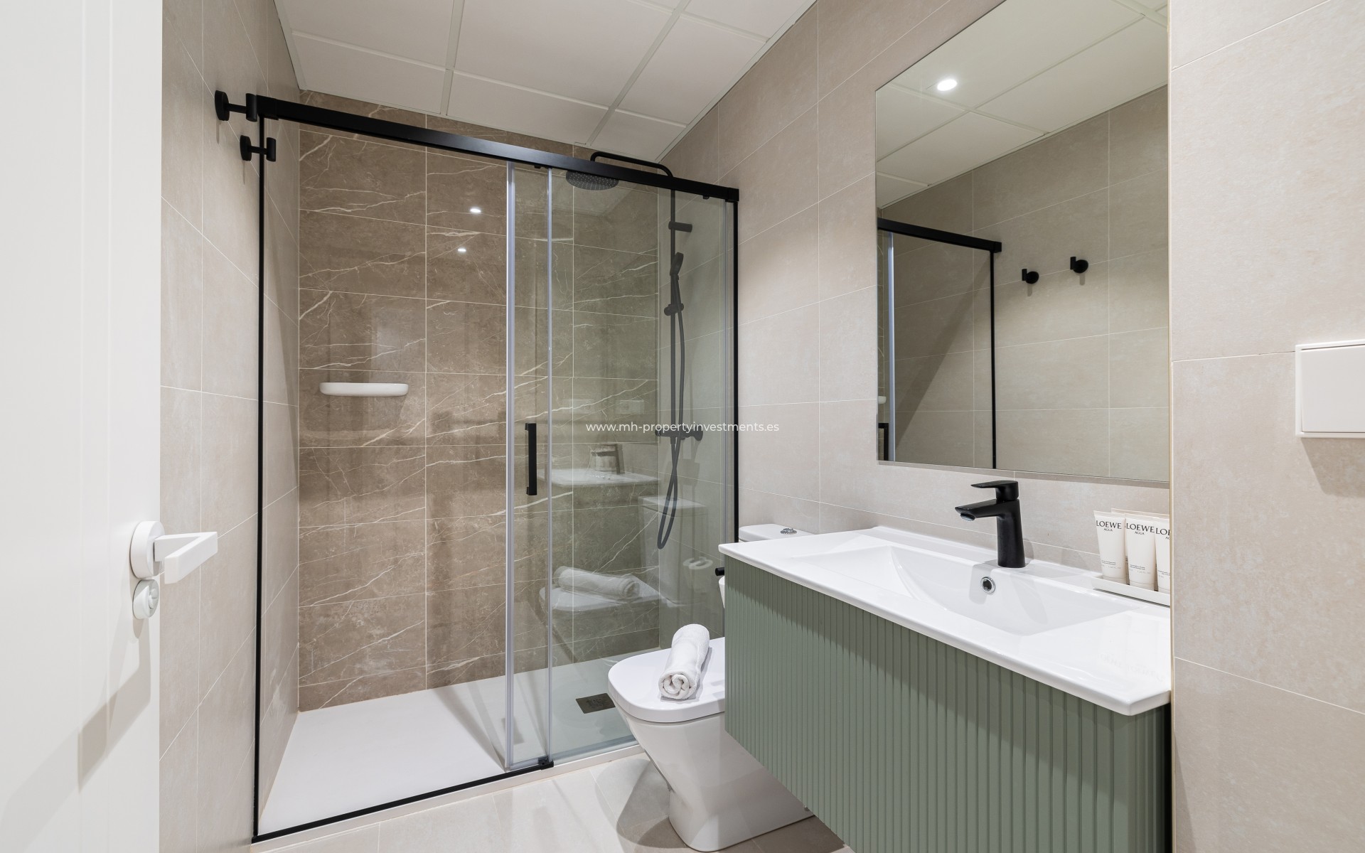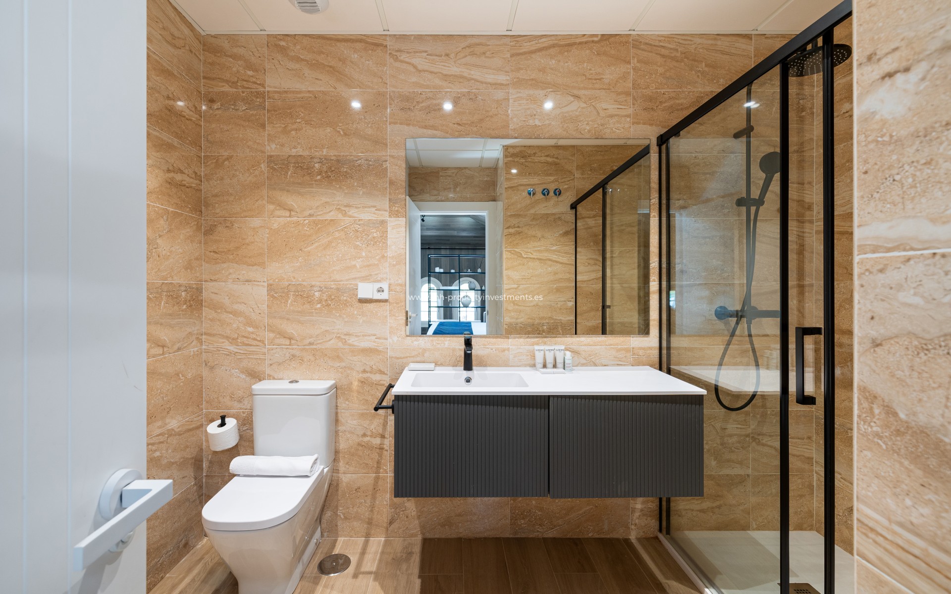 Die Innenräume wurden so gestaltet, dass sie mit ihren hohen Decken und großen Fenstern möglichst viel Licht und Platz bieten. Das Wohnzimmer und die offene Küche bieten einen gemütlichen und praktischen Raum, perfekt für das tägliche Leben oder um Gäste zu empfangen. Die Immobilie verfügt über zwei geräumige Schlafzimmer und zwei moderne Bäder mit hochwertigen Oberflächen, die einen Hauch von Stil und Komfort verleihen. Es umfasst auch elektrische Heizung und Klimaanlage, für optimalen Komfort das ganze Jahr über.