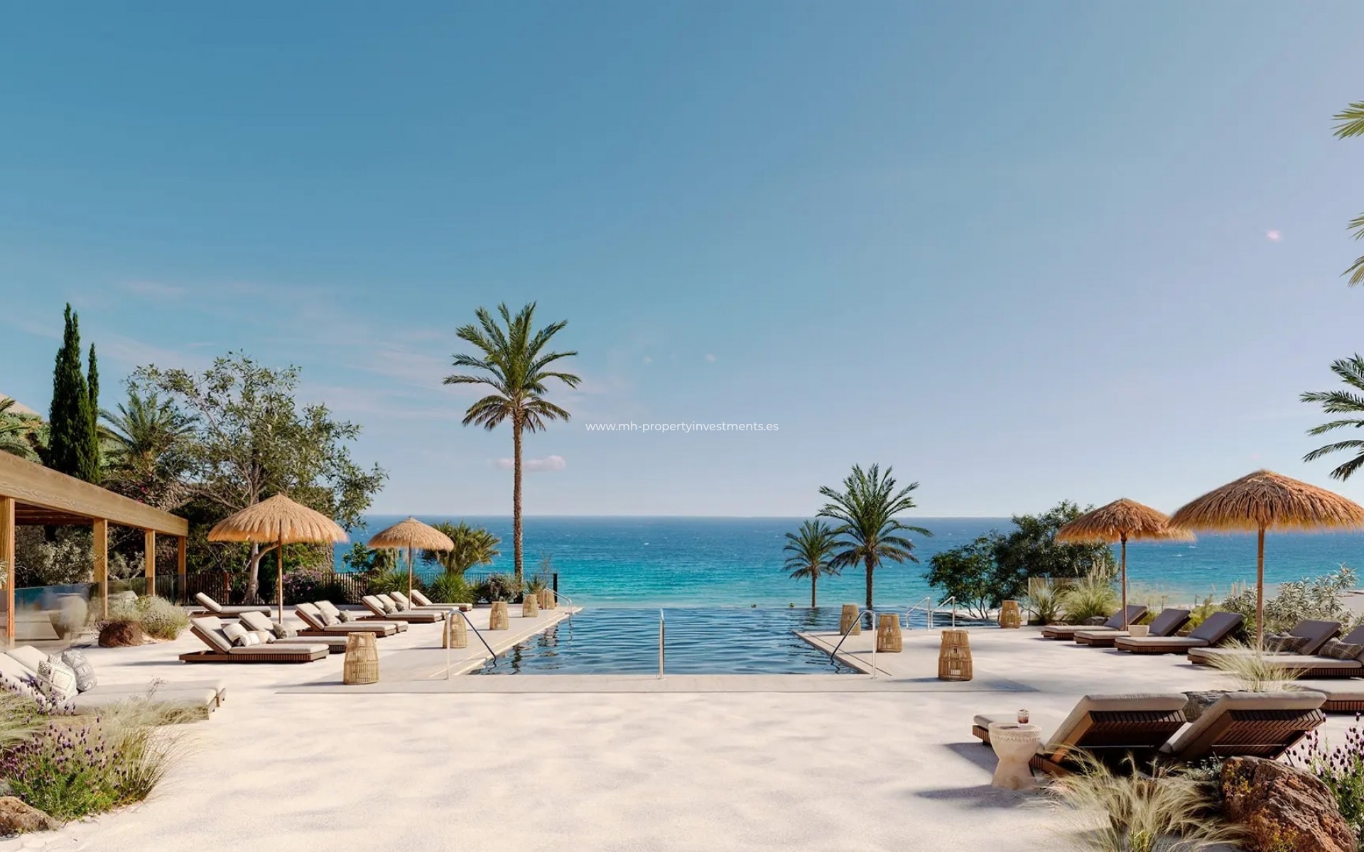Les intérieurs des logements sont conçus dans un souci de confort et de qualité. Les appartements, les penthouses et les rez-de-chaussée offrent des espaces spacieux et lumineux, avec des finitions de haute qualité qui reflètent un style méditerranéen contemporain. Les cuisines sont entièrement meublées et équipées d'appareils électroménagers haut de gamme, et chaque appartement comprend un garage et une salle de rangement. Les chambres sont conçues pour être des havres de paix, avec de grandes fenêtres qui permettent aux vues sur la mer et à la lumière naturelle de pénétrer, créant ainsi une atmosphère relaxante et accueillante.