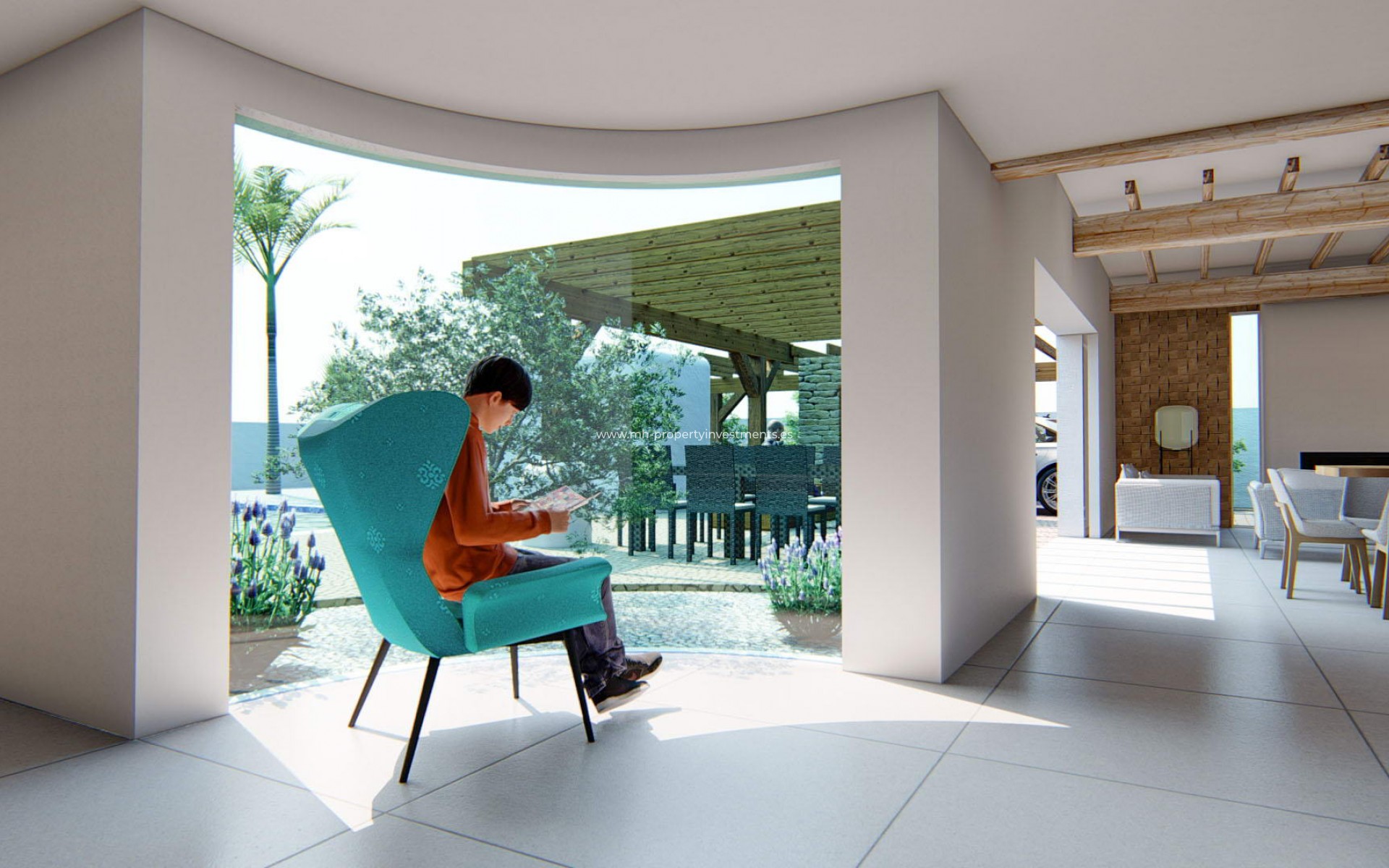 The Ibizan project offers a unique design with an L-shaped layout on the ground floor, with a main volume that houses the living-kitchen-dining room, highlighting a large sliding glass window that opens onto the pool area and south-facing terrace. The interior is characterised by a cosy living room with a higher than normal height, decorated in warm wood tones. The night area includes bedrooms, bathrooms, laundry room and an office, separated from the public area by a rotunda-shaped hall with curved glass and an olive tree, creating an elegant ambience. In addition, there is an outdoor storage room and a large pergola over the parking area for added convenience. OUTDOOR AREAS The Ibizan project is distinguished by its L-shaped layout on the ground floor, highlighting a volume that houses the living-kitchen-dining room, with a large sliding glass panel that is hidden in the partition walls and opens onto the pergola area and terrace with a south-facing swimming pool. It also has a large pergola over the parking area, offering an additional covered outdoor space. INDOOR AREAS The interior is organised around a living room with a higher than normal height, decorated with warm wood tones in ceiling beams, wall panelling and kitchen cupboards. The night area includes bedrooms, bathrooms, laundry room and an office, divided from the public area by a rotunda-shaped hall with curved glass, which opens out towards the pool area and an olive tree, creating a cosy and elegant atmosphere. There is also an outside storage room for additional storage. ALFAZ DEL PI Alfaz del Pi, on Spain's Costa Blanca, is a tourist treasure that combines the serenity of Mediterranean life with a wide range of cultural offerings. Known for its beautiful promenade and crystal clear beaches, this coastal enclave offers water activities and an enviable climate all year round. Tourism in Alfaz del Pi is enriched by its cultural diversity and events such as the L'Alfàs del Pi Film Festival, which attracts international film lovers. The old town, with its traditional charm, blends harmoniously with the modernity of its urban life. The lifestyle here is relaxed, with a strong presence of foreign residents who enjoy a quiet life by the sea. Local gastronomy, hospitality and natural beauty make Alfaz del Pi a charming destination to enjoy the best of Mediterranean coastal life.