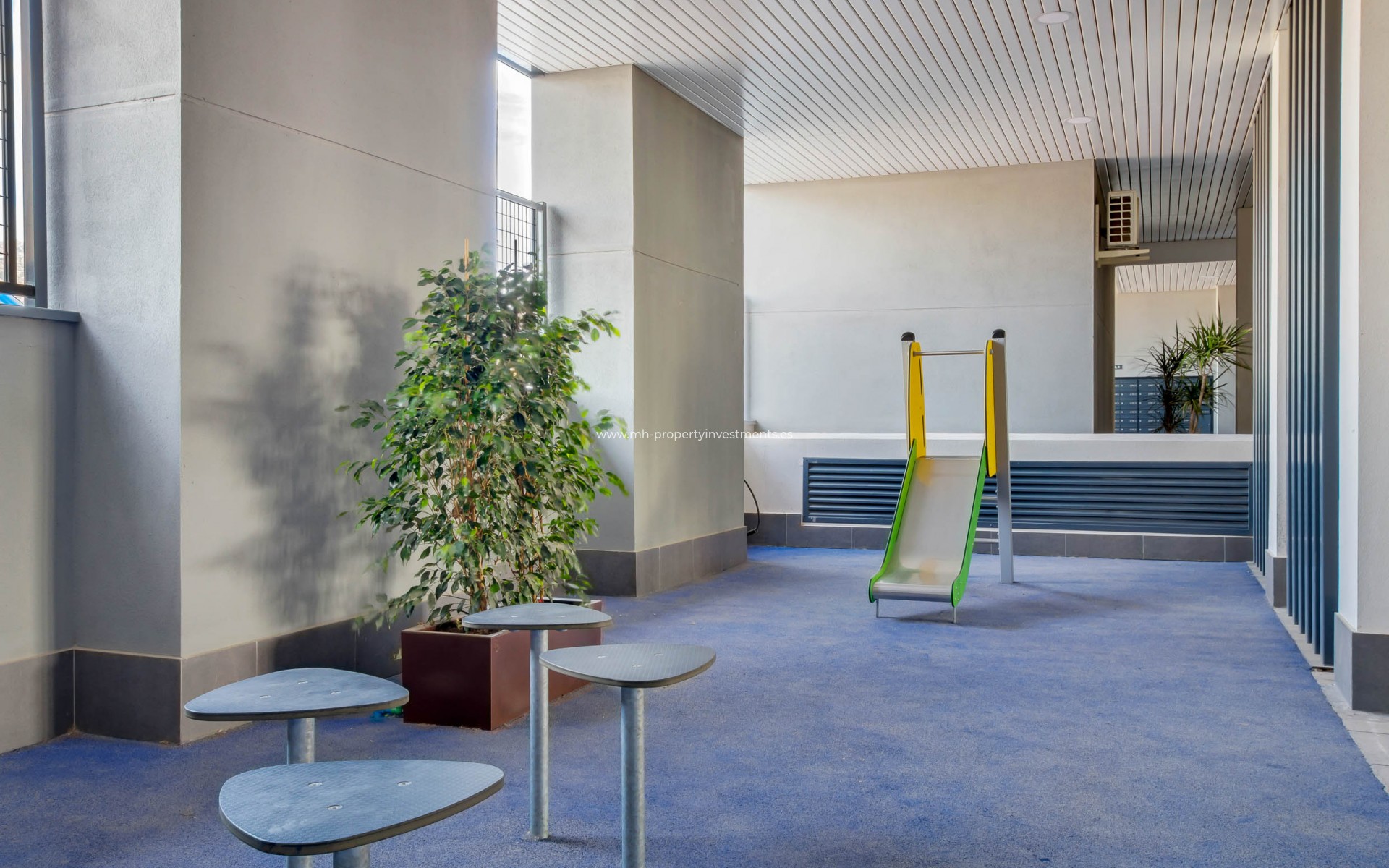 The complex is surrounded by extensive landscaped gardens, designed to create an atmosphere of tranquillity and enjoyment all year round. Outdoor facilities include a communal swimming pool, perfect for cooling off on hot days, and a play area for children. In addition, there are dedicated areas for outdoor sports, allowing residents to maintain an active and healthy lifestyle without leaving the development. The covered and uncovered communal areas have been carefully planned to provide an ideal space for socialising and wellbeing.